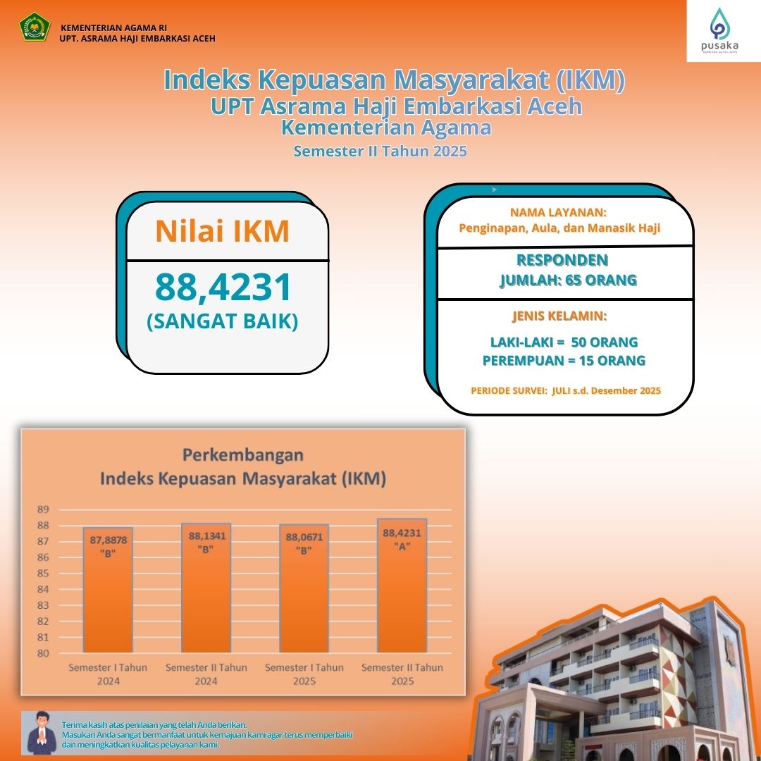 UPT. Asrama Haji Embarkasi Aceh memiliki Fasilitas Aula, Penginapan dan Taman Manasik. Reservasi: 0811 671 5533